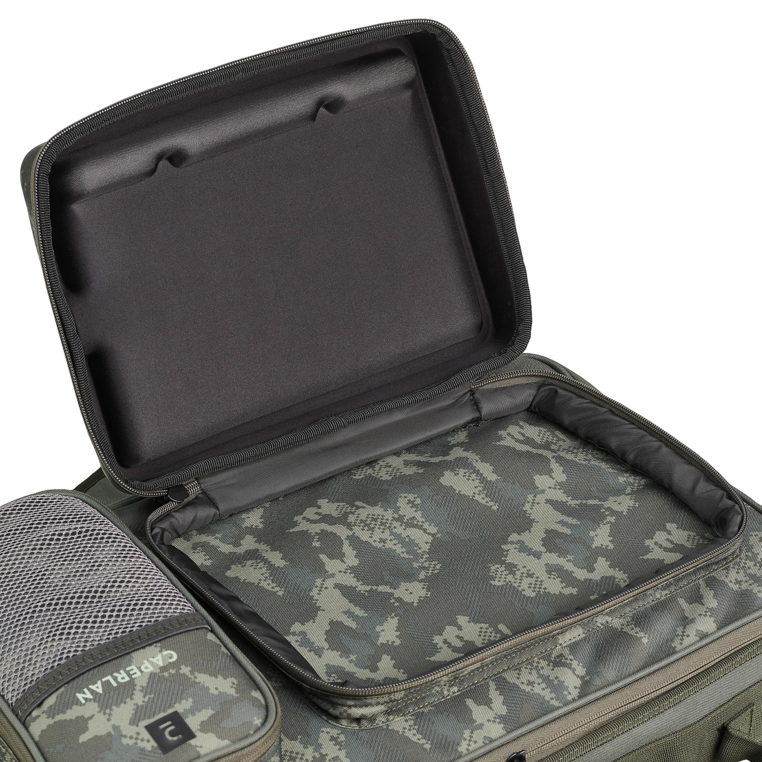 – Handy partitioning to store small equipment and accessories (tools, rigs, bait tubs, sinkers, etc.)