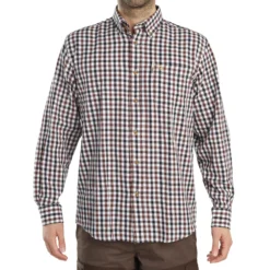 Long-Sleeved Checked Cotton Country Sport Shirt Brown Black Verney Carron