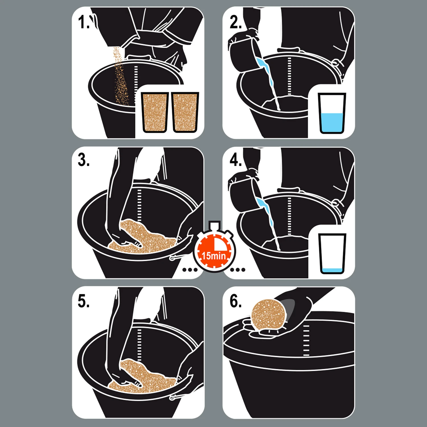 Allow the bait to rest for 15 mins, then pour in the rest of the water to create a substance that is sufficiently wet for you to form balls.