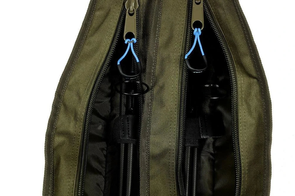 The 2 rod sleeves feature a handy pocket with Velcro tabs on the side which is designed to safely secure your landing net or third rod to the side of the sleeve (compatible with the Cult Tackle single sleeves). Unlike most other two/three rod sleeves, our version offer’s separate compartments with individual zip sections for each rod. This ensures all rods are kept separate during transportation, however kept together in a compact sleeve. This also provides extremely easy access when on the bank.