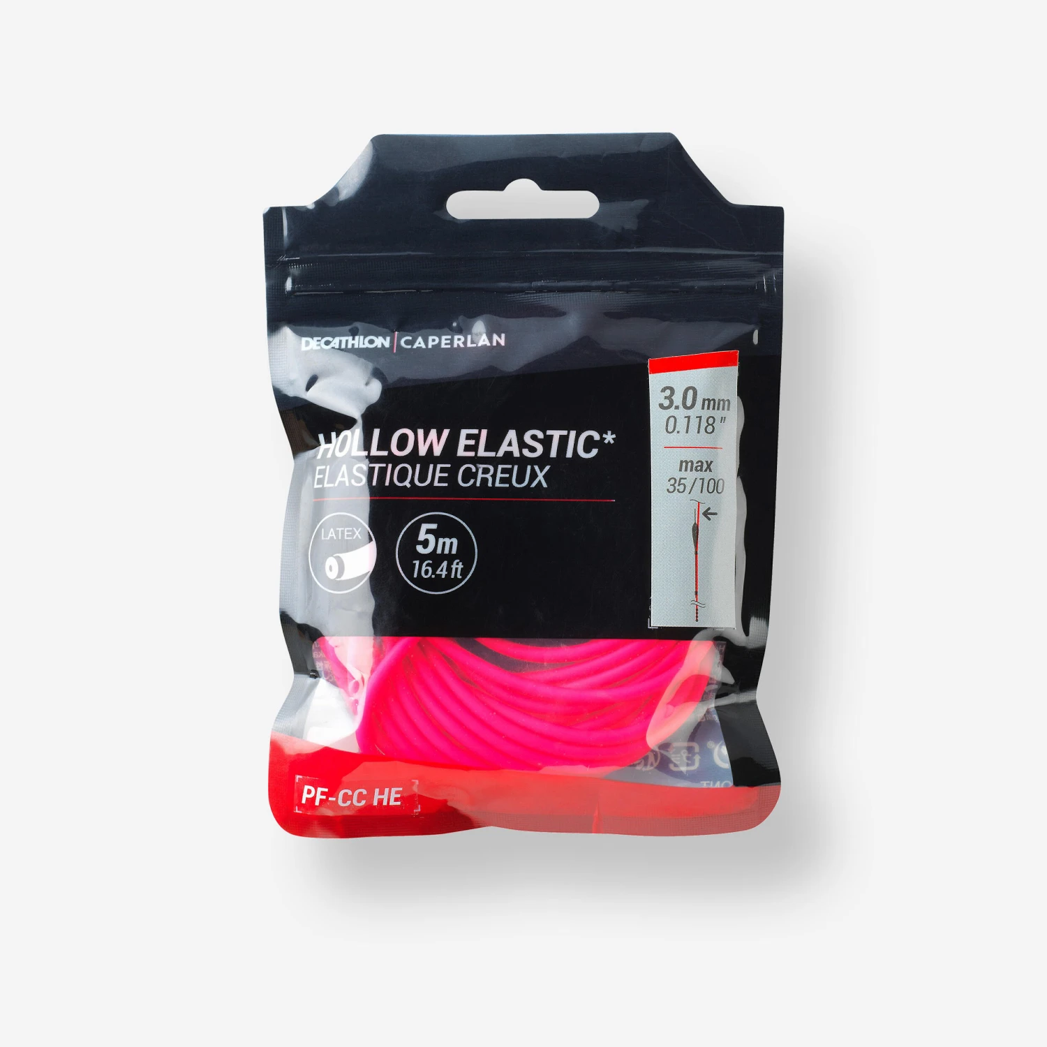 Large-diametre plastic hollow for still fishing for carp.The elasticity of this hollow elastic will let you fight your fish with greater flexibility than with solid elastic and will allow you to fish more finely for more bites.