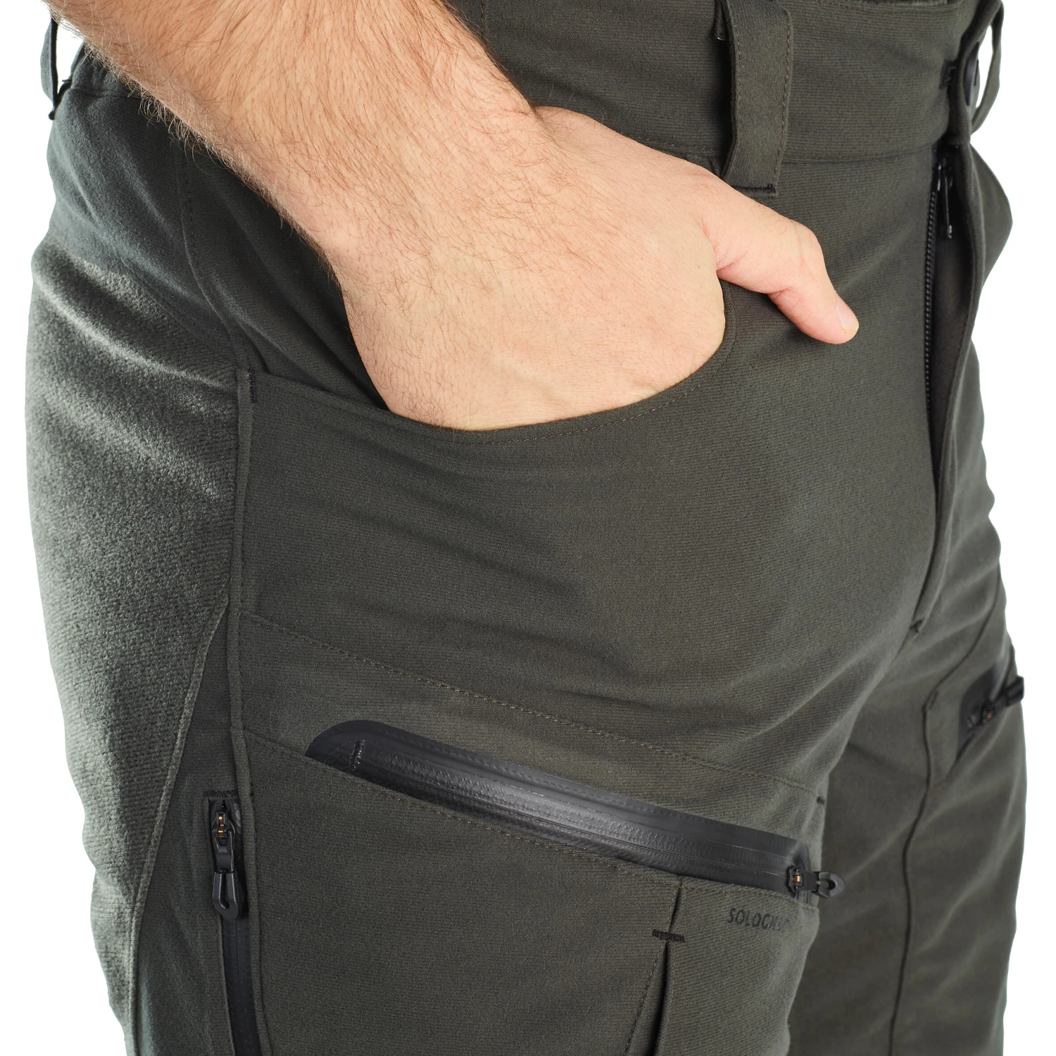 Our design team has created these warm, waterproof trousers for hunters on approach and on the lookout for large game in cold weather.In harsh conditions, these trousers keep you dry and warm down to -5°C. Use the ventilation zips to wick away perspiration.