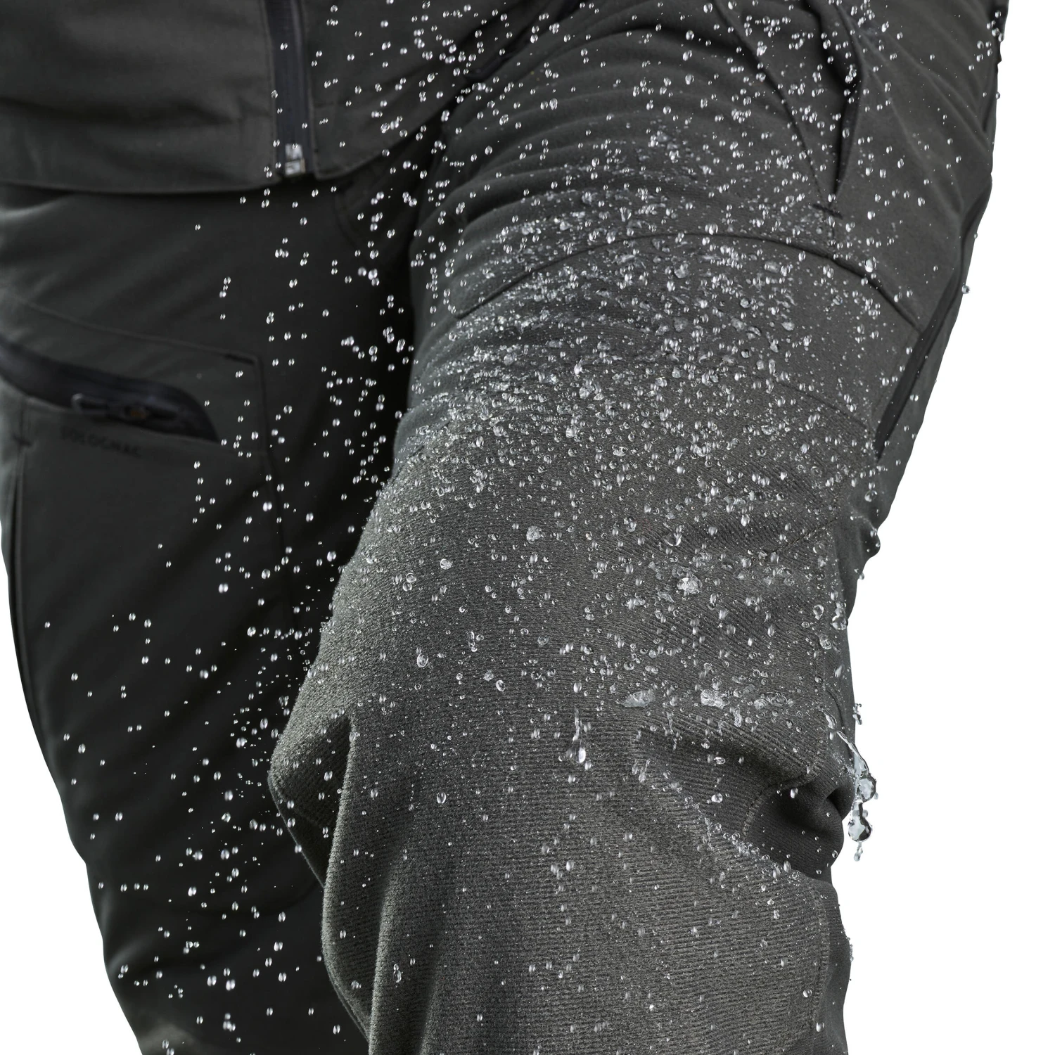With a waterproof rating of 2000 mm, the trousers provide excellent protection from the rain. We measure a fabric’s resistance to a water column, in mm (based on the ISO 811 standard). The higher the pressure, the more waterproof the tissue is. Components scoring 2000 mm can resist the pressure from 2000 mm of water (which is equivalent to a 2-hour long rain shower)