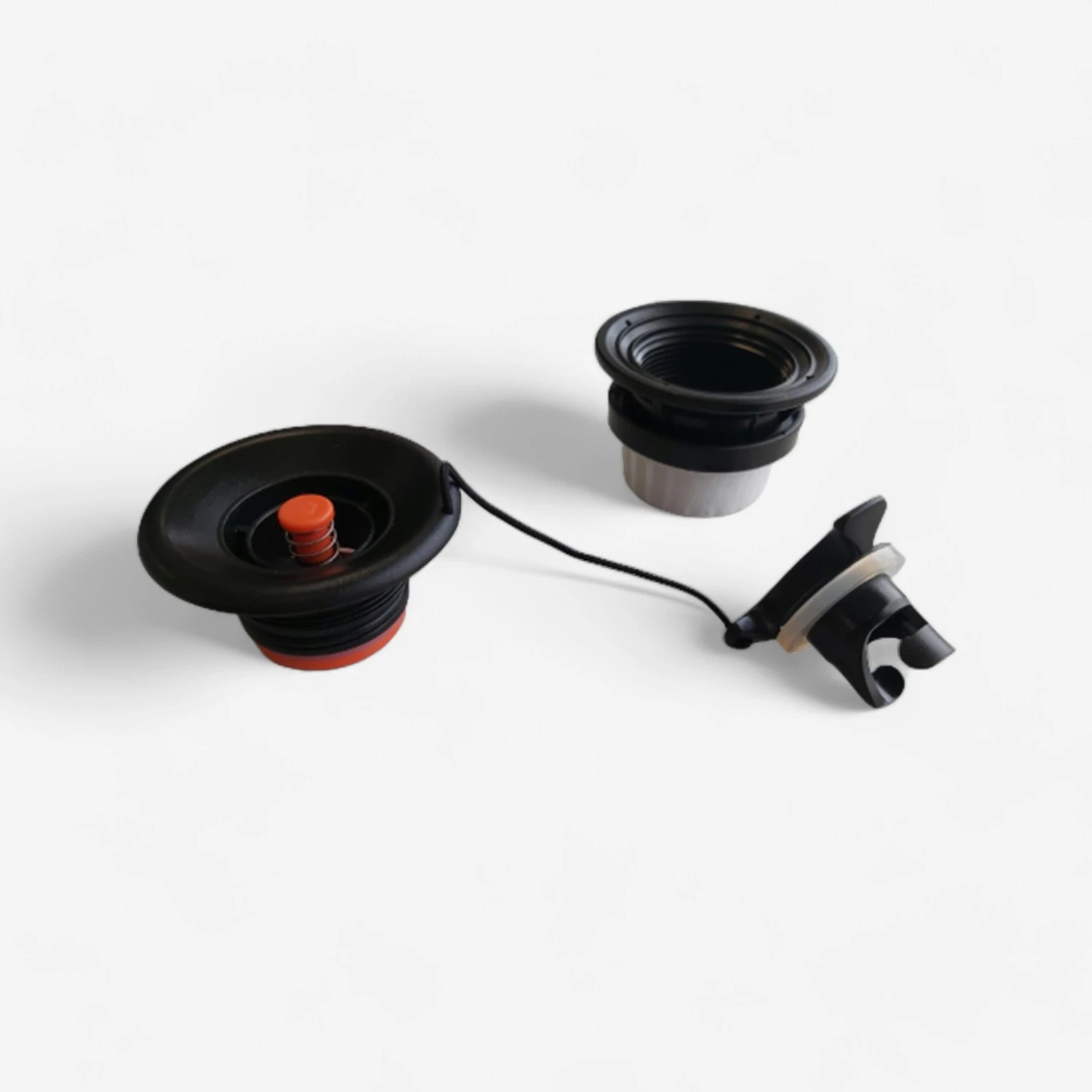 Screw in fully without over-tightening, re-inflate your craft and check that there are no air leaks. If you can hear a hissing sound, tighten it a little more.