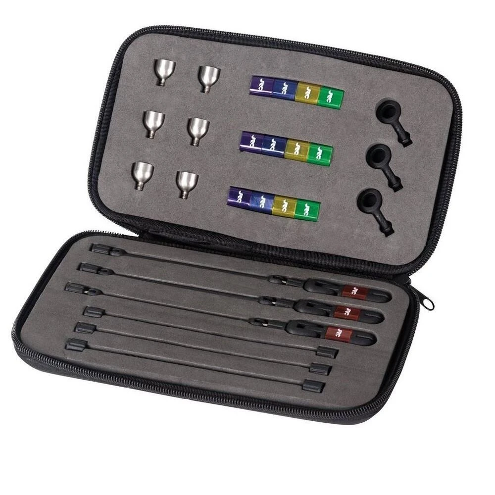 Introducing one of the most versatile indicators available today. The Kurve Indicator features an articulating head and unique line clip system which can be set to grip the line or allow it to run freely. These two key factors mean that the Kurve can be adjusted to be incredibly sensitive at picking shy bites or adjusted to minimize false bites caused by wind etc. Thanks to the flattened surface of the Kurves body, the indicator can be positioned flat on the ground when fishing slack line, again increasing sensitivity and decreasing false wind related bleeps. Five colour lenses are included so you can ‘pimp’ your Kurve up and, with both a chain and swing arm you can tailor the indicator to your preference.
