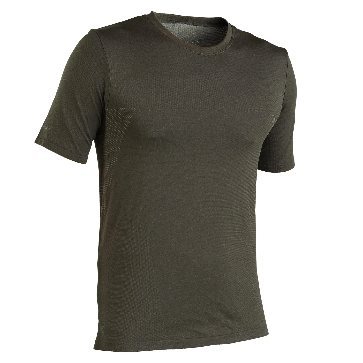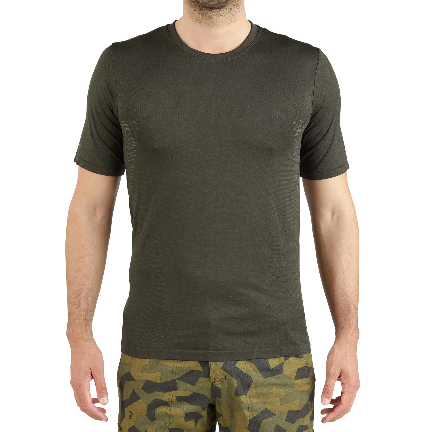 When you hunt, you move. You therefore need a lightweight T-shirt (this one weighs 150 g in Size L) and has a length adapted so as to avoid having the lower back exposed when you raise your arms to shoulder height or you duck. This is also one of the reasons for which this item is made from polyamide: The polyamide fibres are stretchy and durable. They enable clothes to be created which do not lose their shape and which support your movements.