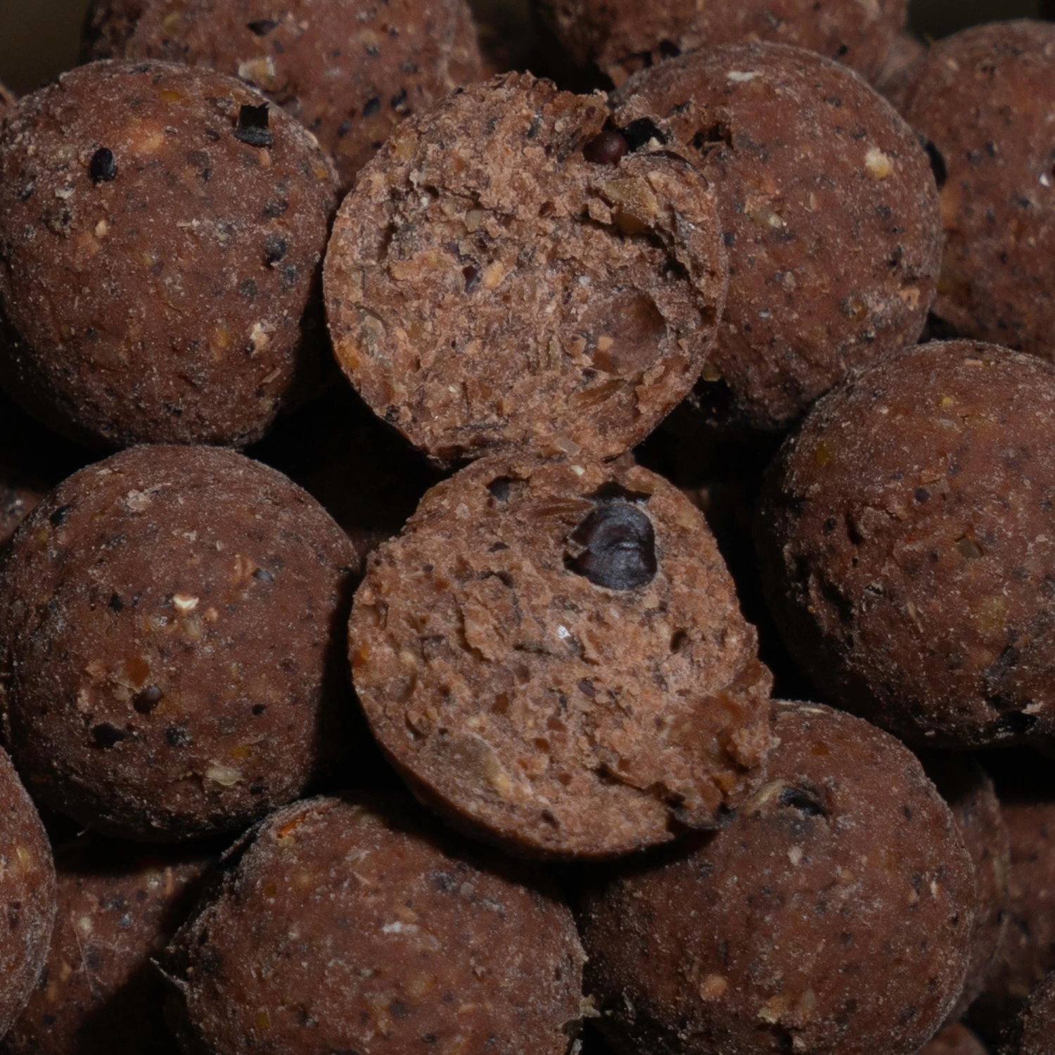 The choice of ingredients gives the boilie a large particle size. During fishing, this large particle size helps dissolve the boilie and makes it more tempting. After the boilie has dissolved, certain particles will remain on your spot and will make your baiting more effective.