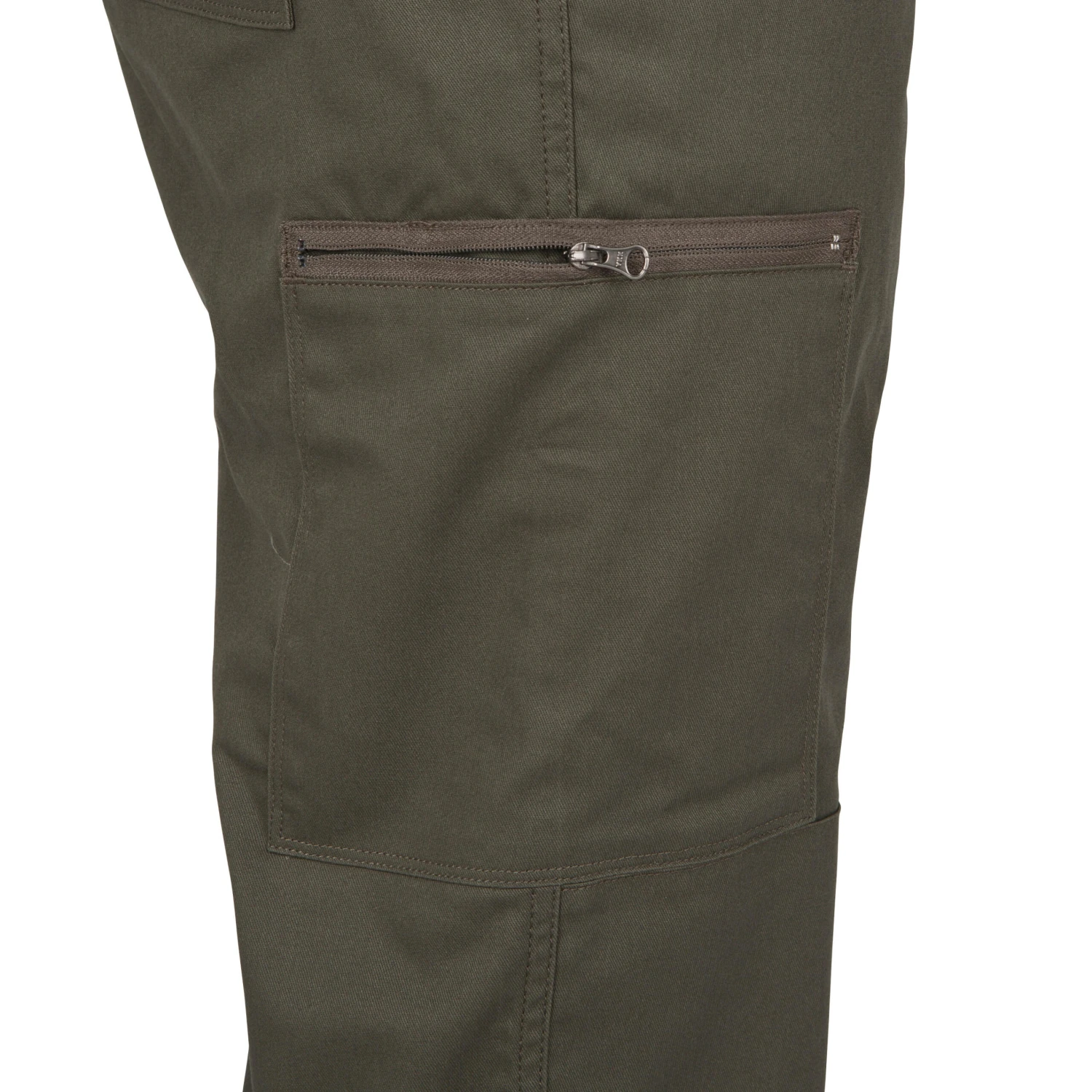Resistant cargo trousers for dog walking and other outdoor activities in dry weather.These lightweight resistant cotton trousers are comfortable yet hard-wearing, with a reinforced zip. With an elasticated waistband and 5 practical pockets (including one with a zip) for storage.