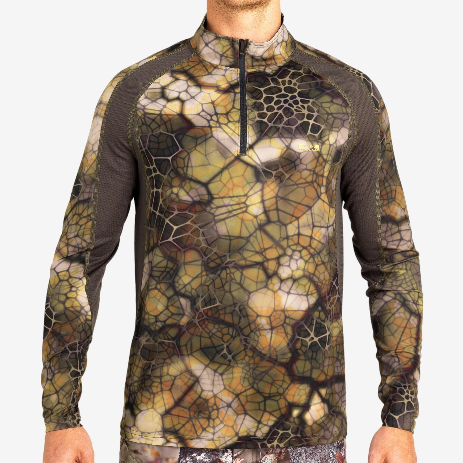 Blend in while observing wildlife in warm weather.A lightweight and breathable long sleeve t-shirt with a long zip opening for ventilation, and underarm mesh inserts to help prevent odours.