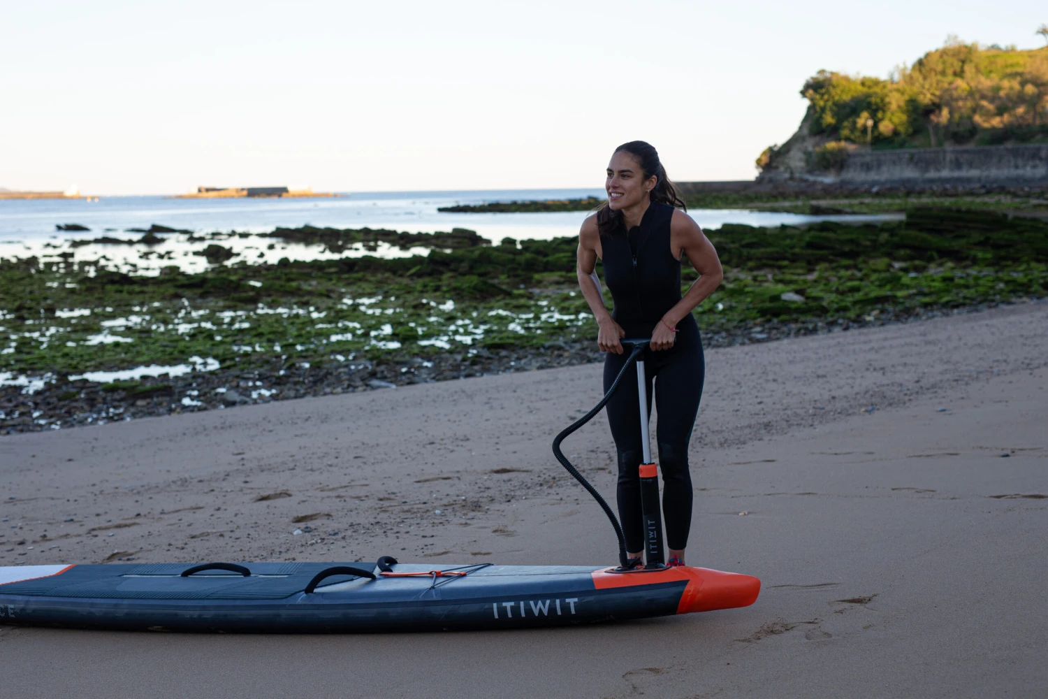 Our team has refined the diameter of the piston to reduce the force needed for inflation. 15 psi with this pump is equivalent to 11 psi with a classic pump.The double-action high-pressure pump is designed to easily inflate SUPs or kayaks to pressures of up to 20 PSI. DEFLATE mode can also be used to optimise the storage of the inflatable